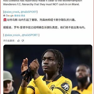 曼联对左边锋马内的兴趣,越来越多媒体报道了如今,有媒体报道说狼队主教练罗布-爱德华兹已经告诉了狼队高层,马内属于非卖品。...