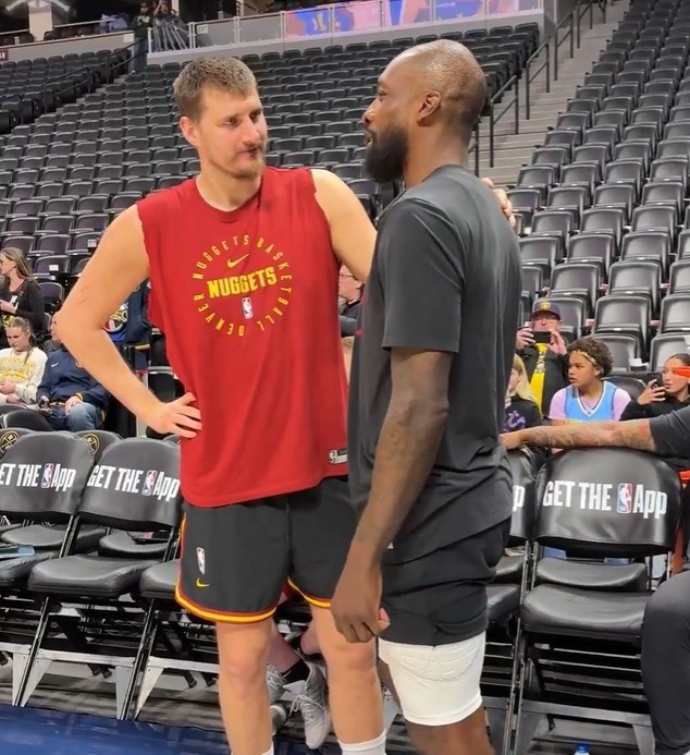 开云体育线上网站-夺冠老队友!约基奇和杰夫·格林赛前寒暄许久