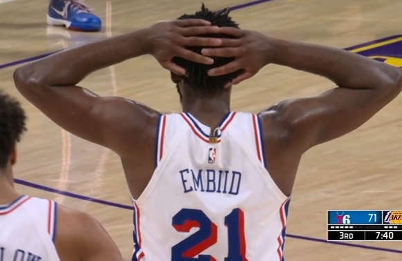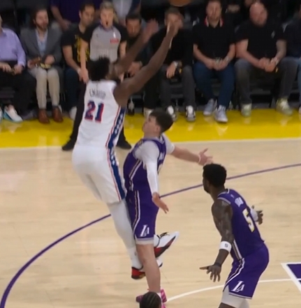开云电竞中文版-这姿势有点搞笑🤣恩比德诡异姿势造成拉拉维亚投篮犯规